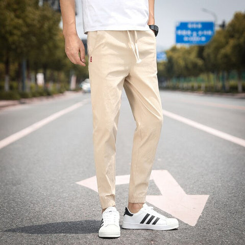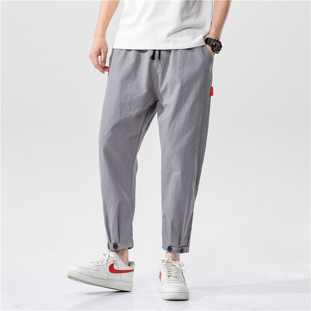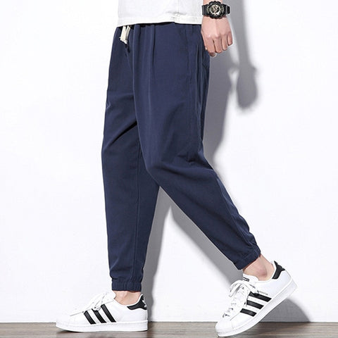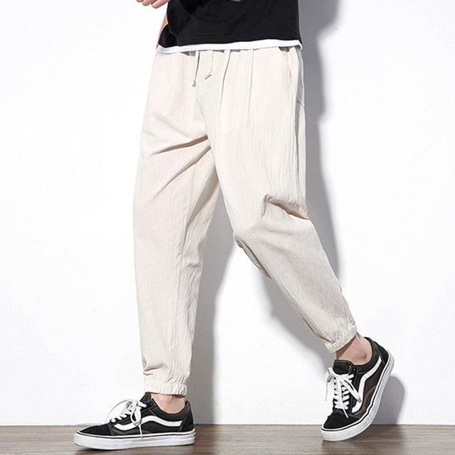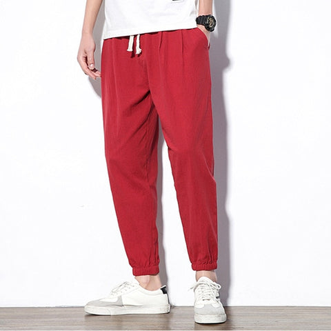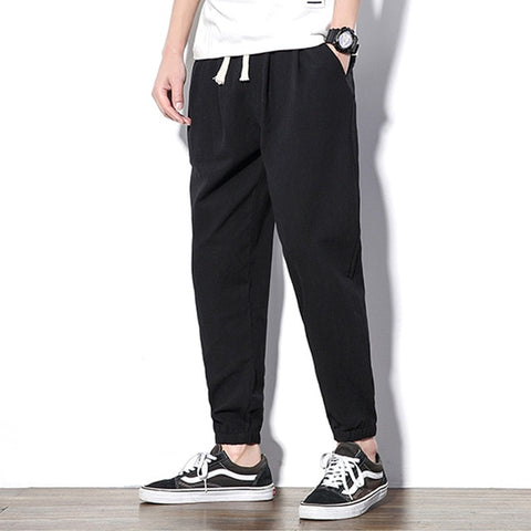 2020 Summer Men's Linen Trousers Hip Hop Jogging Ankle-Length Pants Solid color Breathable Fashion High quality Casual pants Men
